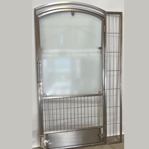 GVPTE-USKN-FD12-4878-XX CLEARANCE STOCK 40% OFF ONLY 2 RIGHT HINGED AND 3 LEFT HINGED Cage Dog-Run Door Stainless Steel and Glass with side panel -- -- must login