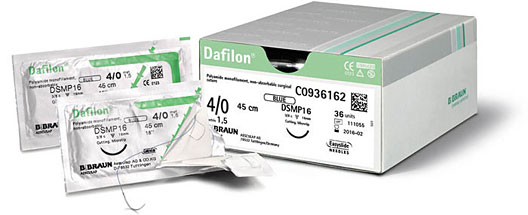 Dafilon is BBraun's non-absorbable synthetic monofilament suture made of polyamide 6/6.6. Dyed blue or black.