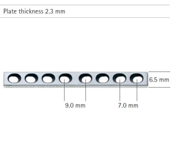 GVPBA-VN147S 1.5mm Mini DC-Plate 7 HOLE x 35mm (use w 1.5 or 2.0mm CortBS) SS Aesculap -- -- must login