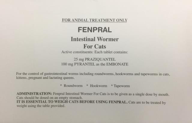 FenTC Fenpral Allwormer Cat 5kg (100 tablet bottle) IN STOCK Riverside -- -- must login