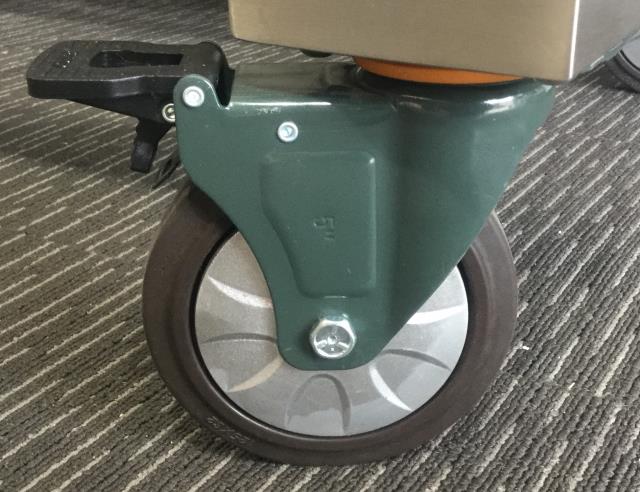 - Durable hospital grade 5" (125mm) diameter castors with braking mechansim on all 4 castors