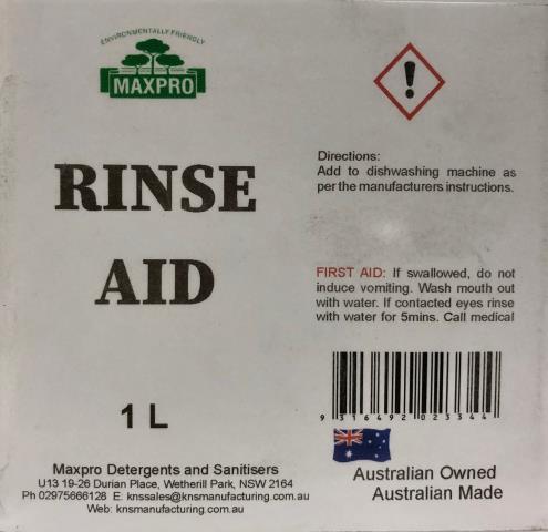 Rinse Aid 1L for dishwashers is used to eliminate streaking of cutlery, glasses, plates & dishes at the end of a dishwasher cycle.