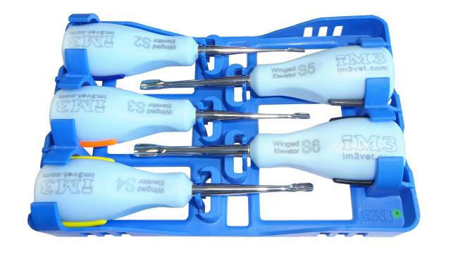5 Piece set of iM3 Ergo Winged Elevators supplied in an autoclavable cassette