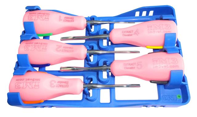 5 Piece set of iM3 Ergo Straight Elevators supplied in an autoclavable cassette