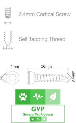 Cortical Bone Screws 2.4mm Diameter - 16mm in Length Self Tapping Quality Medical Grade Stainless Steel 316LVM