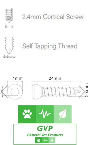 Cortical Bone Screws 2.4mm Diameter - 24mm in Length Self Tapping Quality Medical Grade Stainless Steel 316LVM
