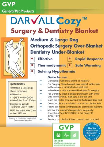 These blankets are specifically designed for veterinary use. The unique blanket surface design is porous polyester which provides low uniformly distributed air flow, providing efficient warming, reducing the 'wind chill' factor and minimising hair contamination.